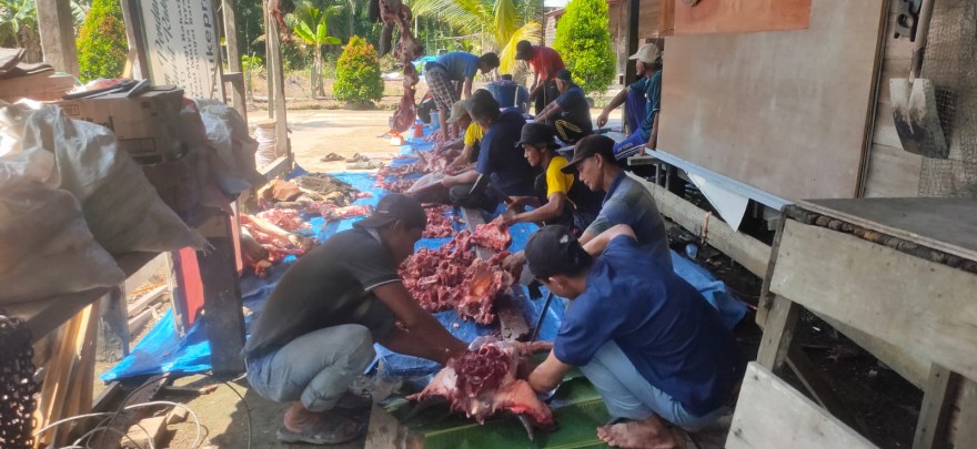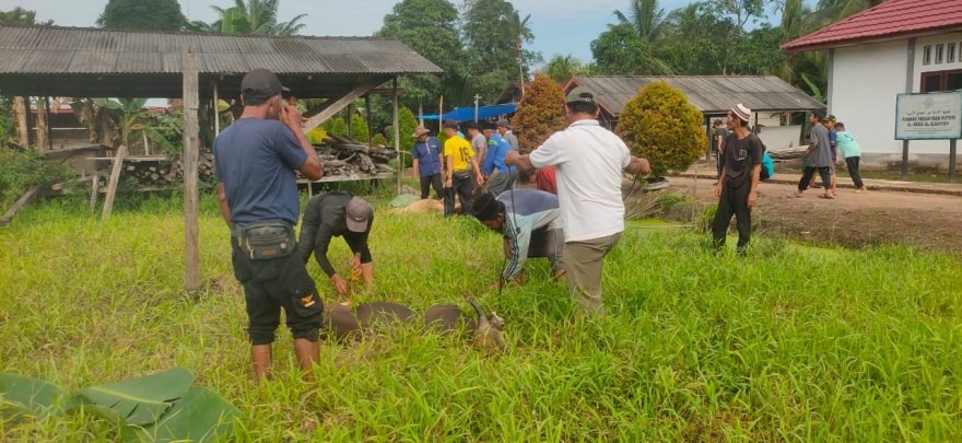 PPID – MUGO MULYO. Pada hari ini Sabtu, 7 Juni 2025 dilaksanakan Penyembelihan Hewan Qurban di Desa Mugo Mulyo Kecamatan Sungai Batang Kabupaten Indragiri Hilir sebanyak 5 ekor, 2 ekor di Dusun Persatuan dan 3 ekor di Dusun Mugomulyo 1. Turut hadir Kepala Desa Mugo Mulyo Drs. Romdon dan Ketua BPD Desa Mugo Mulyo Drs. H. Ahmad Masyhuri, M.Pd.I memantau pelaksanaan penyembelihan hewan kurban yang dipanitiai oleh Misrun, S.Pd dan sebagai petugas penyembelih hewan qurban Drs. H. Anas.